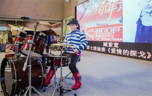 感謝王曦妍的精彩表演!接下來將有請趙周小朋友給我們帶來爵士鼓表演:無伴奏獨奏 指導老師:周老師? 掌聲有請!